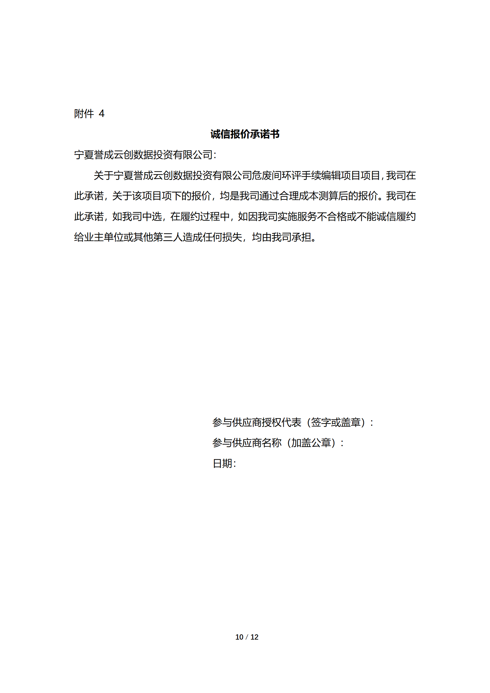 寧夏譽成云創(chuàng)數(shù)據(jù)投資有限公司現(xiàn)采購公司危廢間環(huán)評手續(xù)編輯項目,詳細采購信息參見附件詢價文件。