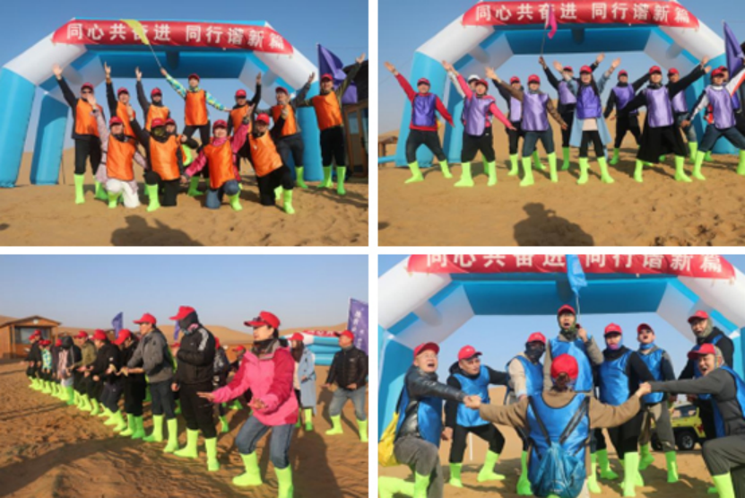 破冰分組宣誓——團建熱身——徒步出發——最后沖刺——頒獎總結,此次活動將通關項目與沙漠徒步相結合,在徒步5km的賽程中,設置了支援隊長、雷區取水、緊急救援等相應挑戰任務,激發團隊之間互相幫助、彼此信任融合、通力合作。